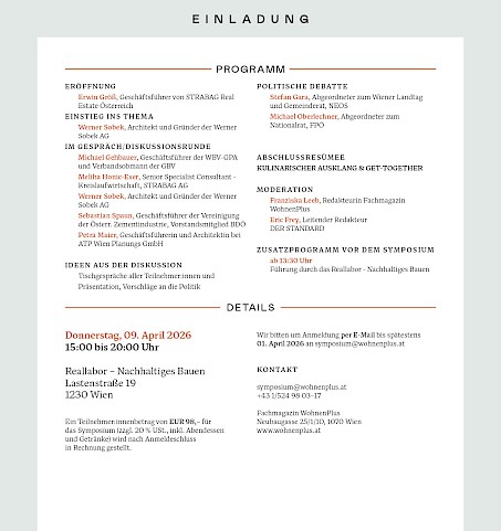 Wir bitten um Anmeldung per Mail bis spätestens 01. April 2026 an symposium@wohnenplus.at
